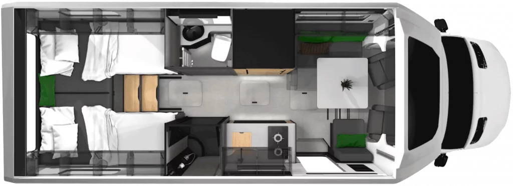 Das erste Modell der neuen Generation ist der teilintegrierte FRANKIA NOCTRA Cruiser 7.6 L – Edition ONE. Dieses Modell überzeugt mit einer besonders umfangreichen Top-Ausstattung und einem durchdachten Grundriss mit getrennten Betten, die höchsten Schlafkomfort bieten.